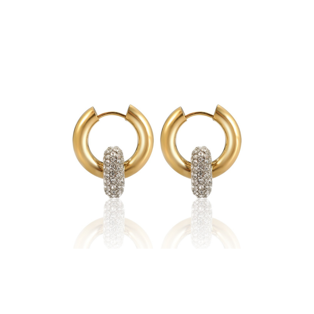 Shine with elegance in the Aurora Spark Hoops. Designed with sleek golden hoops accented by a band of shimmering crystals, these earrings bring the perfect balance of modern minimalism and timeless sparkle. Wear them from day to night for effortless luxury.